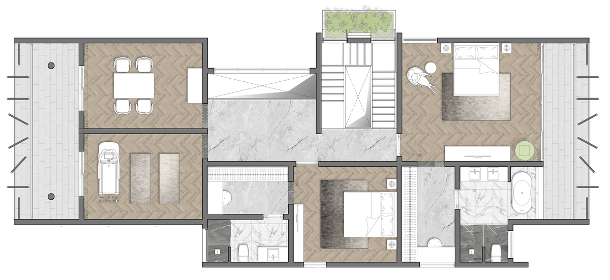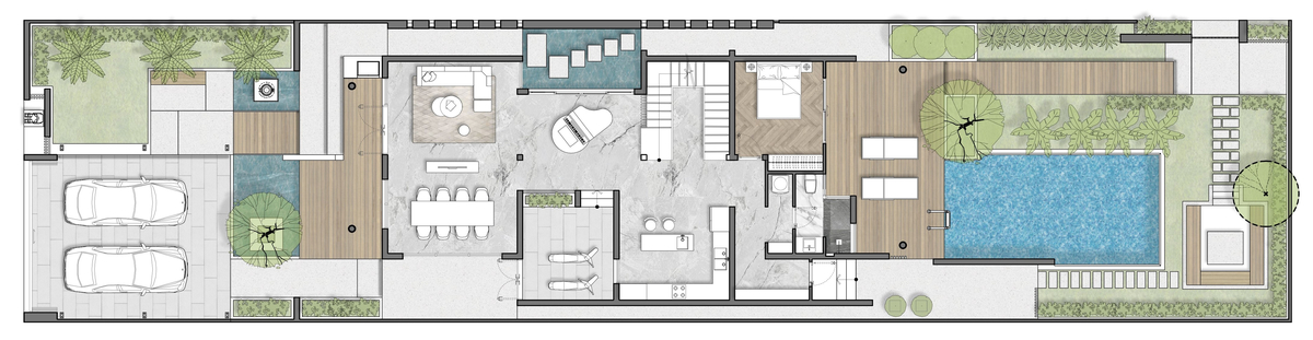 Bản vẽ phối cảnh 3D nội thất và phong cách nhà 2 tầng đơn giản