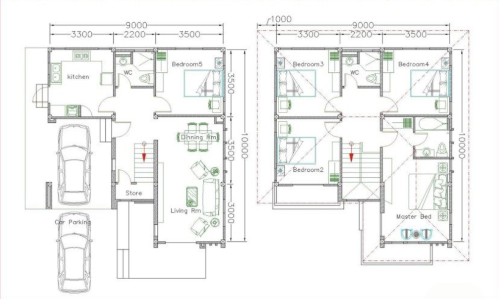 Bản vẽ thiết kế nhà 2 tầng 9x10m