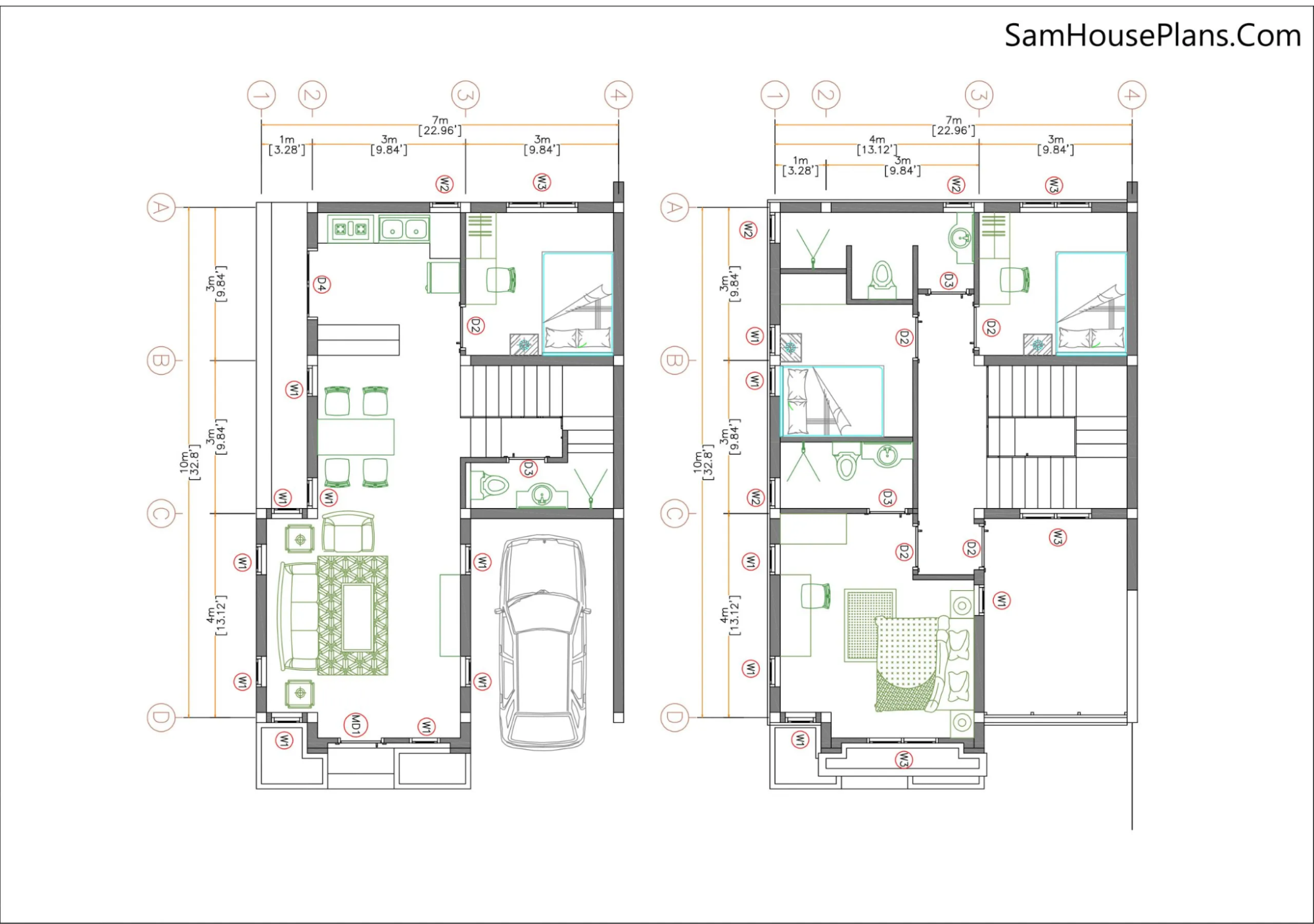 Bản vẽ thiết kế nhà 2 tầng 7x10m