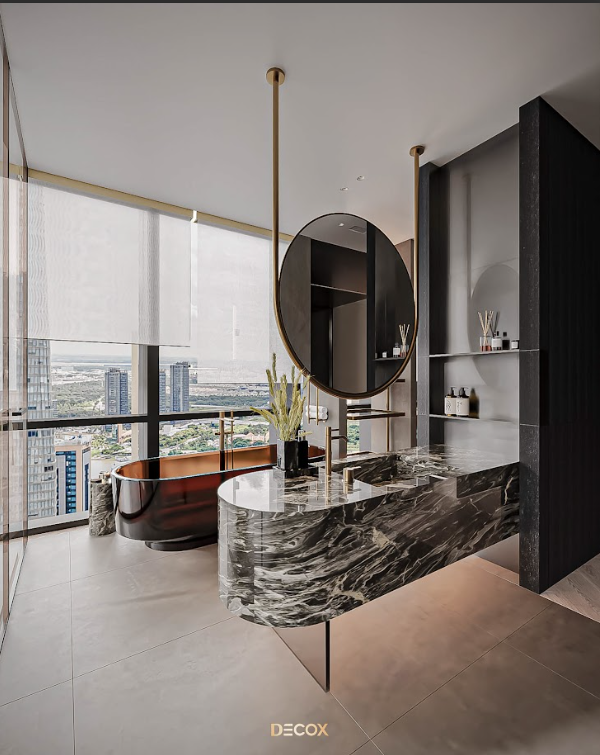 Với diện tích hơn 600m², căn Sky Villa mang đến trải nghiệm sống rộng rãi, thoáng đãng và tách biệt khỏi nhịp sống ồn ào bên dưới. Tầm nhìn toàn cảnh thành phố được đưa vào không gian nội thất một cách tự nhiên, trở thành một phần của bố cục tổng thể và đồng hành xuyên suốt trong sinh hoạt hằng ngày.