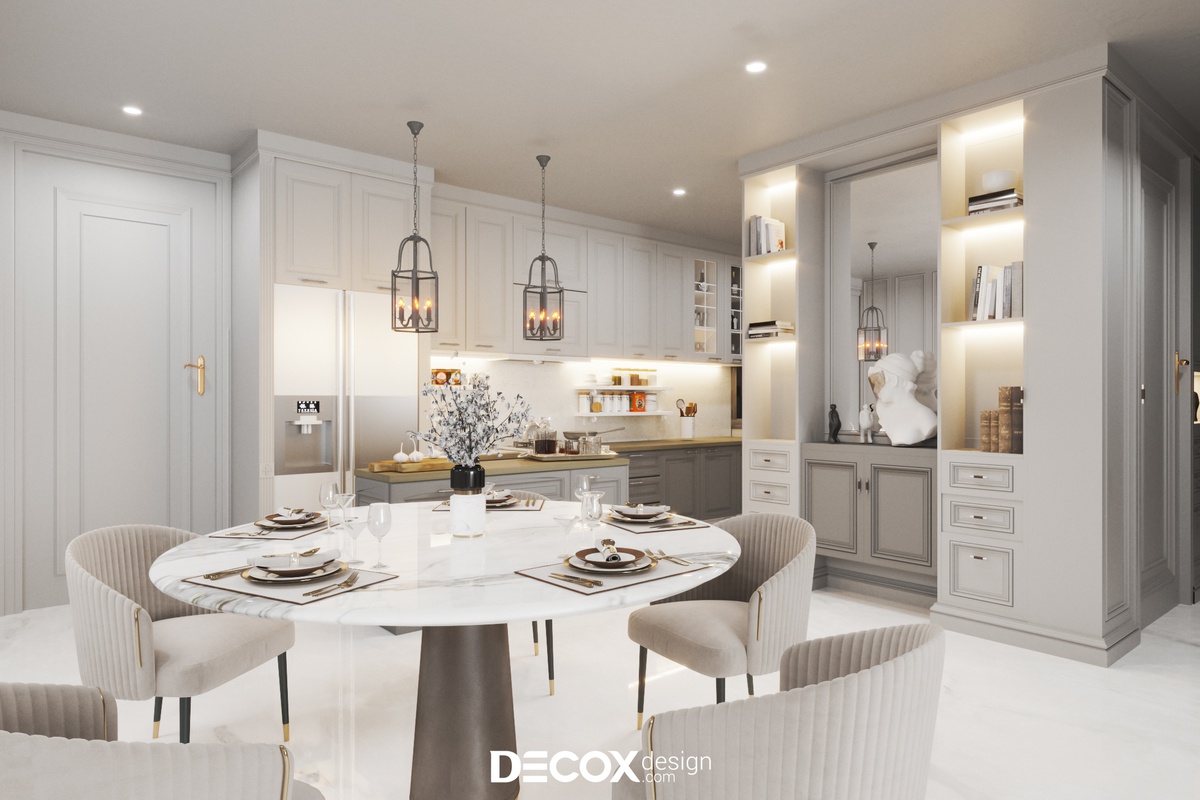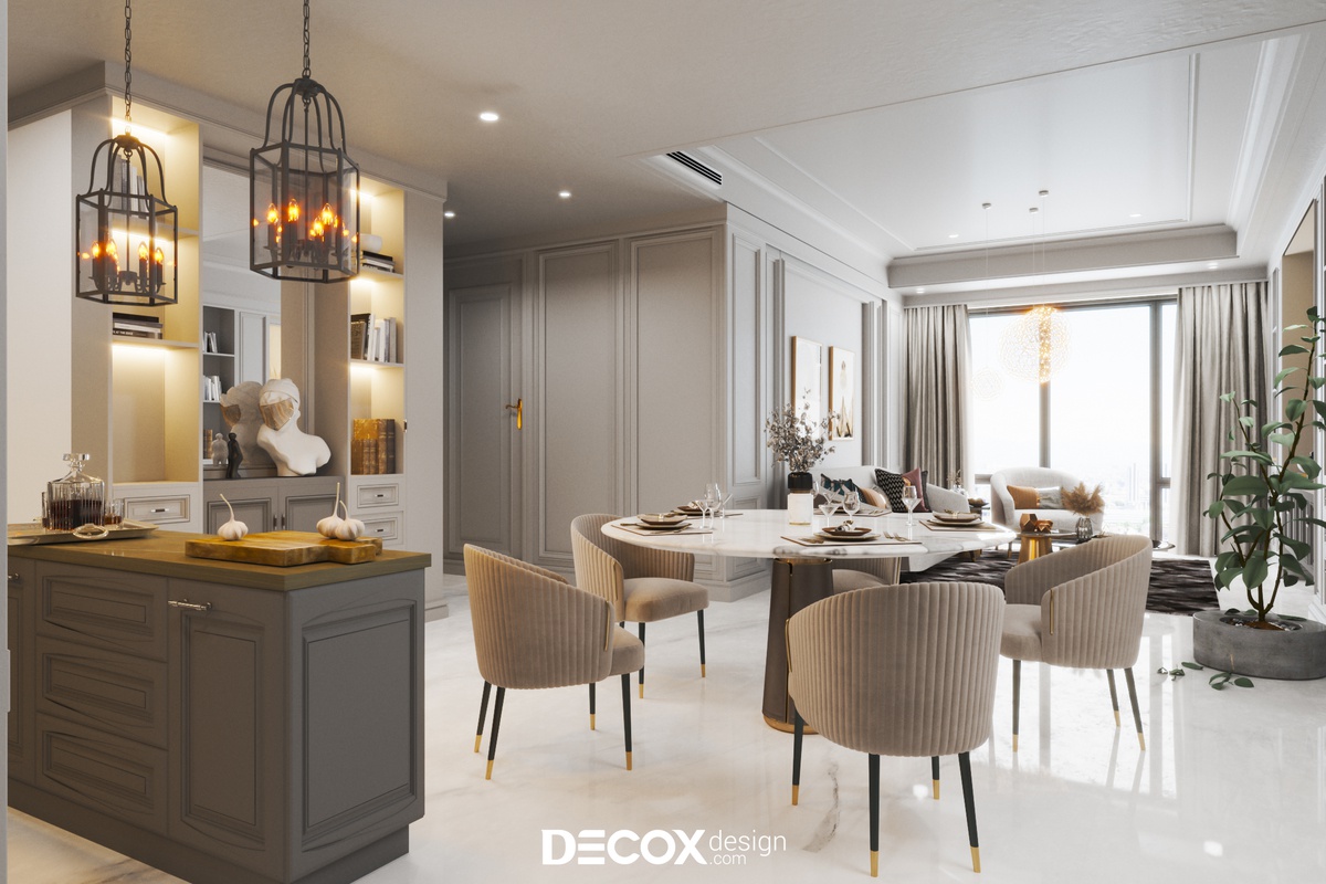 Phong cách bán cổ điển (neo-classic) là biểu tượng của nét đẹp sang trọng, xa hoa và đẳng cấp nhưng vẫn mang trong mình âm hưởng của thời đại. Tựa như một bản hòa ca mang theo nét hiện đại trên nền âm hưởng cổ điển, thiết kế nội thất căn hộ Empire City 83m2 là tổng thể thống nhất giữa màu sắc, chất liệu và vật dụng nội thất toát lên sự cân đối giữa thẩm mỹ và tiện nghi.