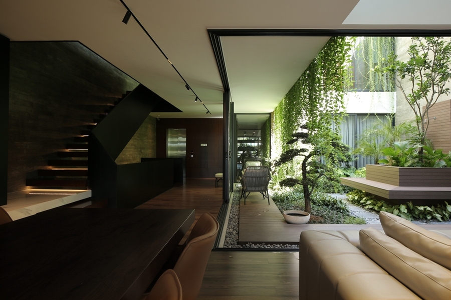 - Tối ưu hóa không gian sống: Đối với những khu đô thị, thành phố lớn, nhà phố/ nhà ống chiếm mật độ vô cùng cao. Với kết cấu dài sâu ngang hẹp, tiếp giáp 3 mặt với các công trình liền kề thì giếng trời trong nhà sẽ là giải pháp kiến trúc tuyệt vời để khai thác ánh sáng, thông gió tự nhiên và tạo được điểm nhấn cho công trình.