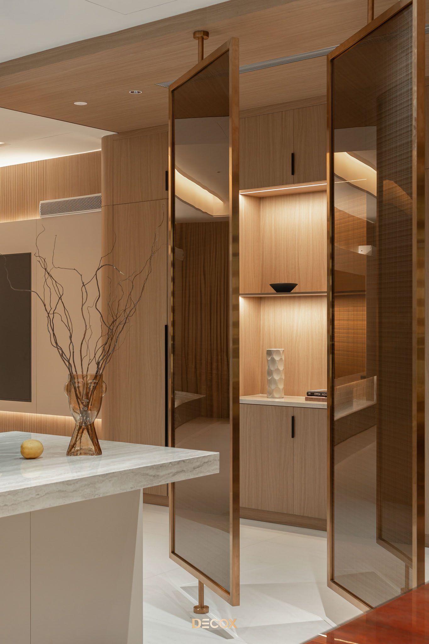 Dự án Ha Noi Westlake Villa được phát triển theo phong cách Modern Luxury, hướng đến một không gian sống rộng mở, sang trọng nhưng vẫn giữ được cảm giác ấm áp và tinh tế. Tổng thể nội thất sử dụng bảng màu trung tính như kem, be và nâu gỗ, kết hợp các vật liệu cao cấp như đá, kim loại và gỗ tự nhiên để tạo nên chiều sâu thị giác và sự cân bằng trong không gian.
