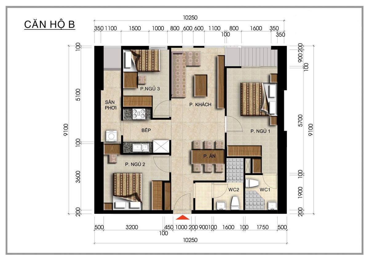 Mặt bằng căn hộ Căn hộ B - Diện tích 88m2