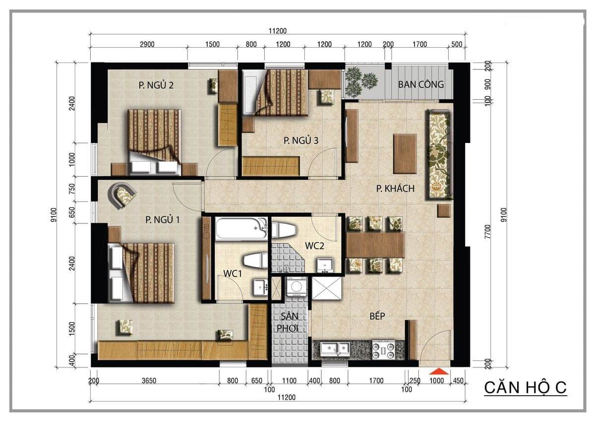 Mặt bằng căn hộ Căn hộ C - Diện tích 97m2