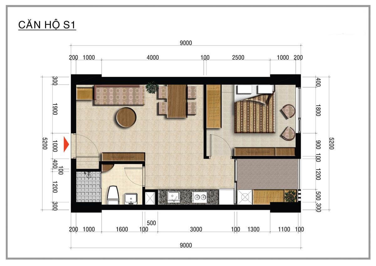 Mặt bằng căn hộ Căn hộ S1 - Diện tích 43m2
