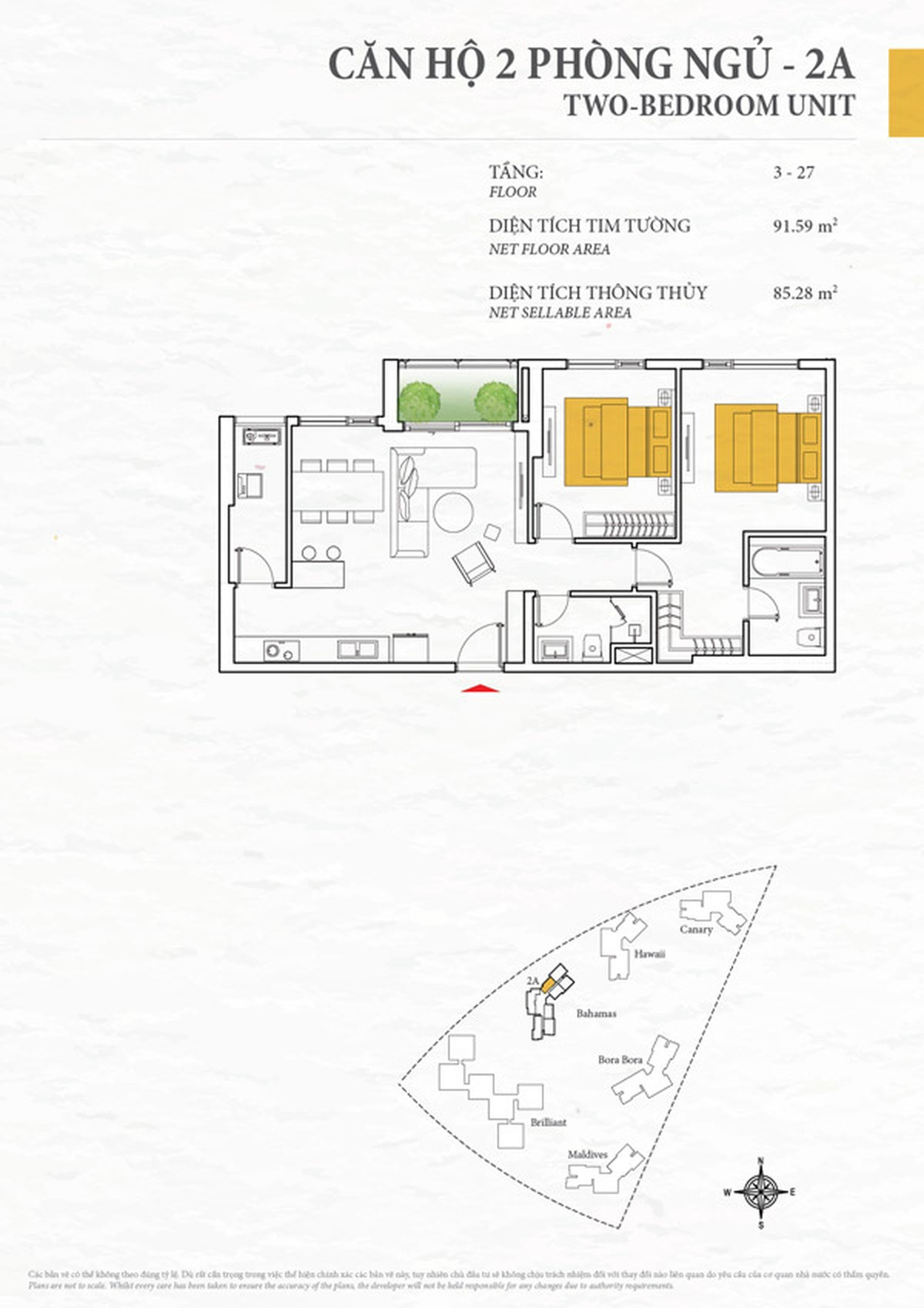 Mặt bằng căn hộ chung cư Diamond Island 85,28m2 - CH 2A - 2 phòng ngủ