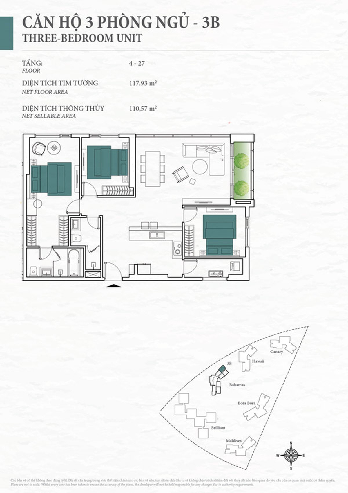 Mặt bằng căn hộ chung cư Diamond Island 110,57m2 - CH 3B - 3 phòng ngủ