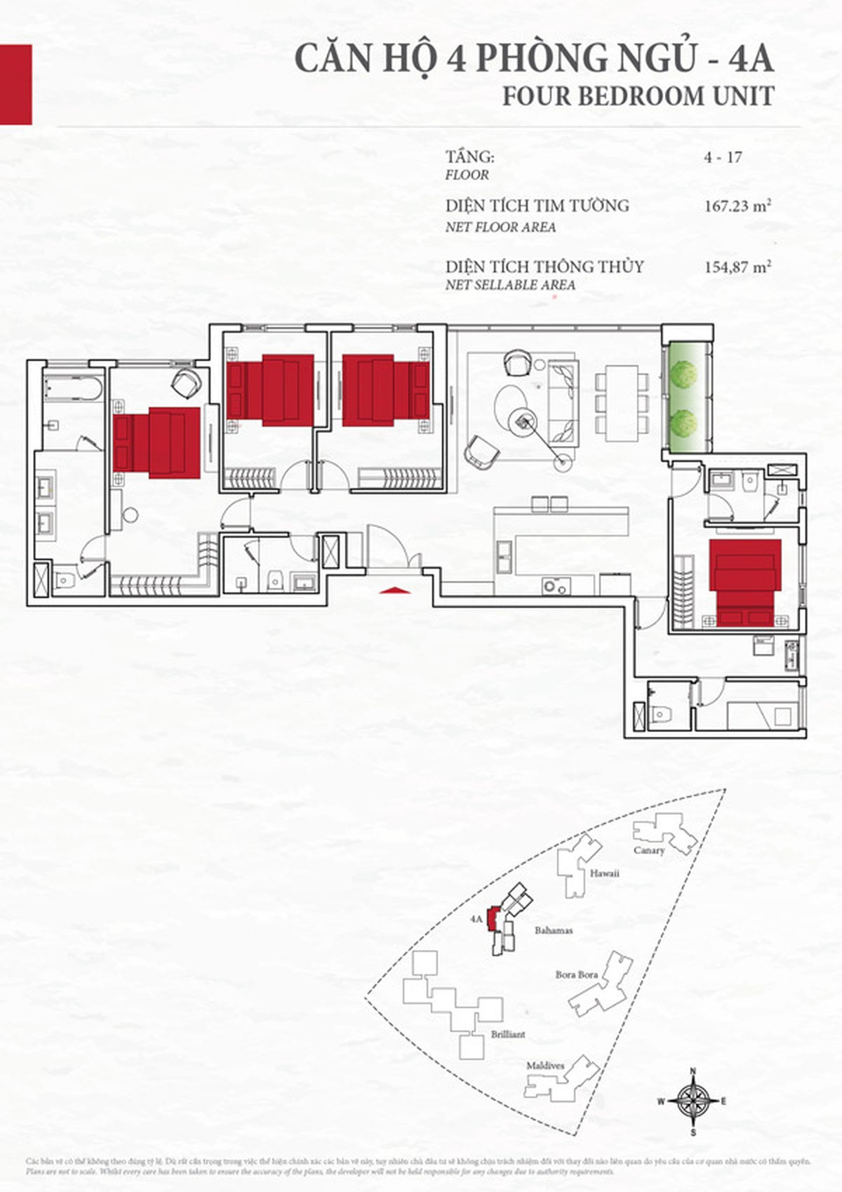 Mặt bằng căn hộ chung cư Diamond Island 154,87m2 - CH 4A - 4 phòng ngủ