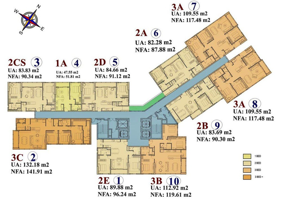 Các loại căn hộ: Từ 01 - 03 phòng ngủ (10 căn hộ/tầng), Pool Villa, Garden Villa, Sky Villa.