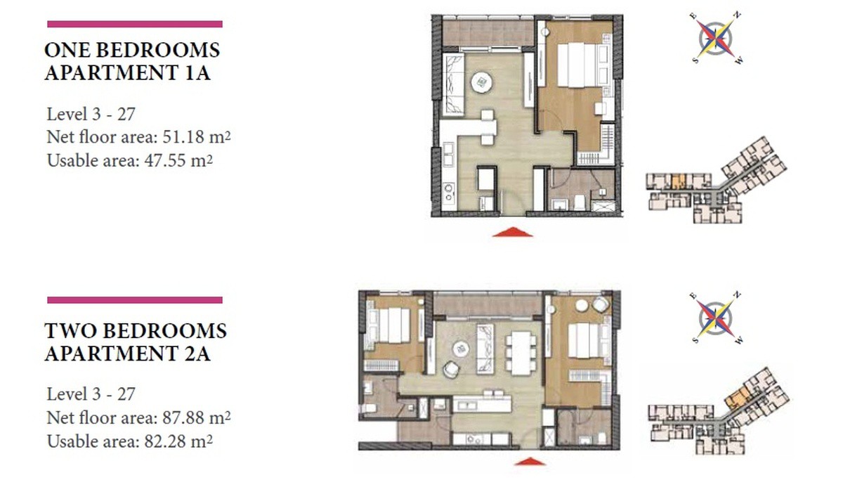 Căn hộ 1 PN (47,55m2) - Căn hộ 2 PN (82,28m2)
