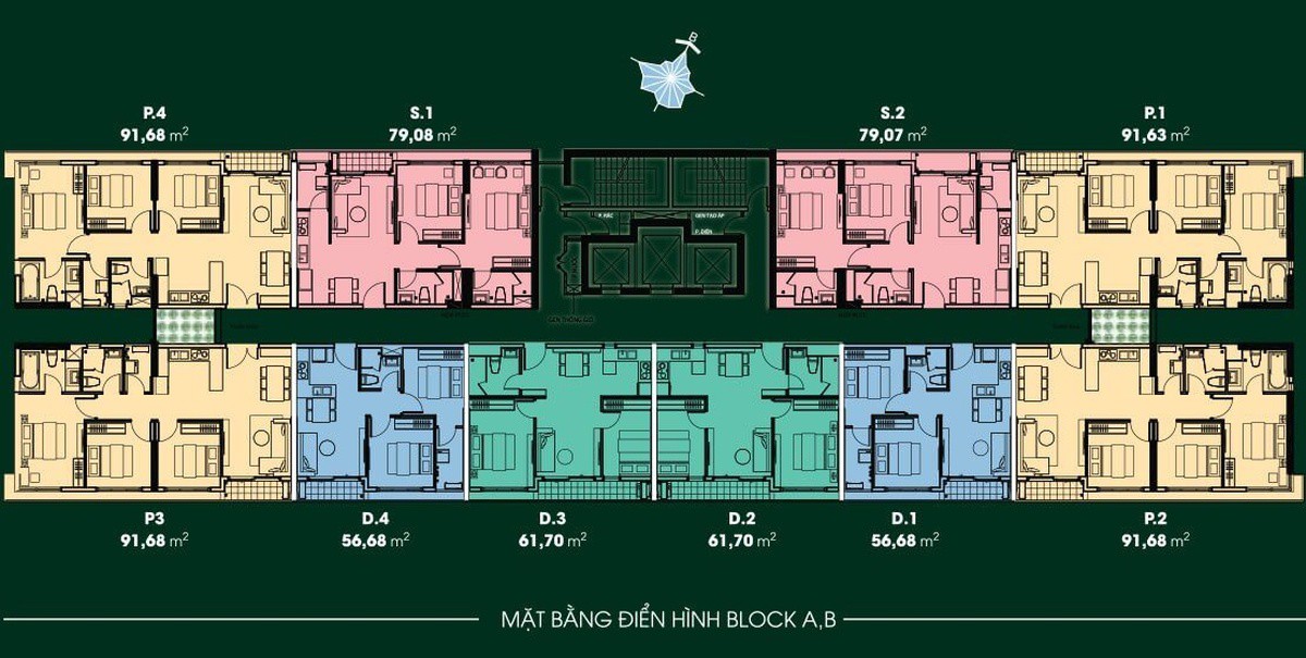Mặt bằng điển hình Diamond Lotus Riverside - Block A, B