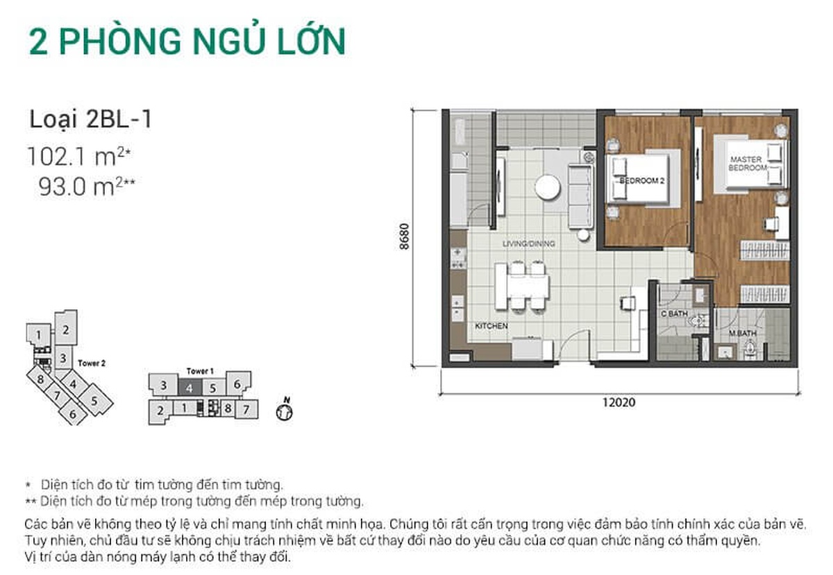 Mặt bằng căn hộ chung cư Estella Heights 93m2 - CH 02 PN