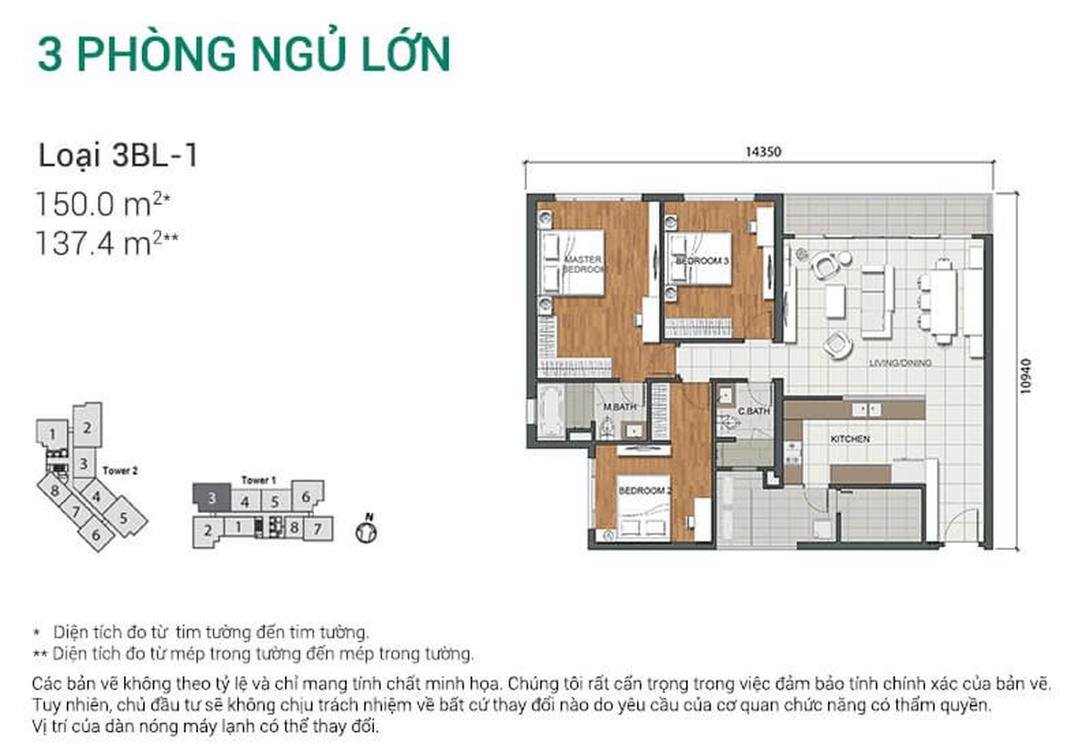 Các loại căn hộ: Từ 02 - 03 phòng ngủ