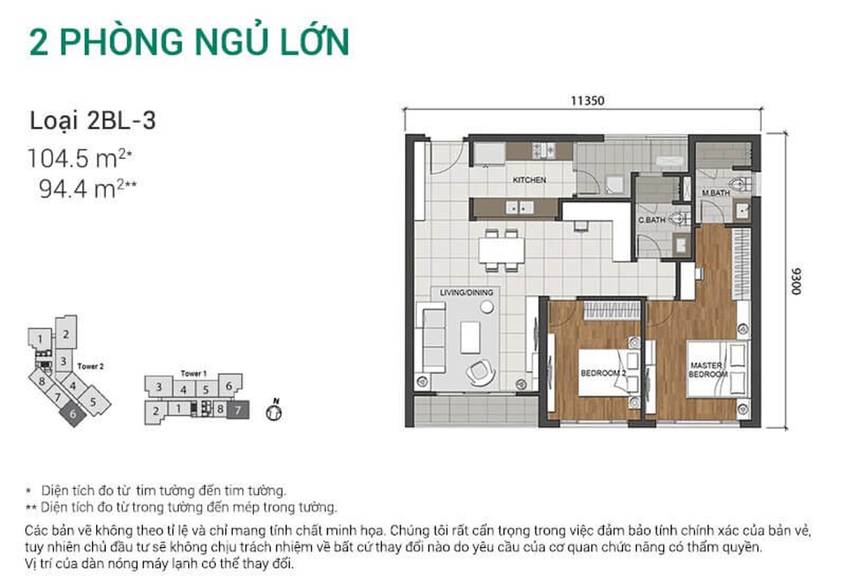 Mặt bằng căn hộ chung cư Estella Heights 94.4m2 - CH 02 PN