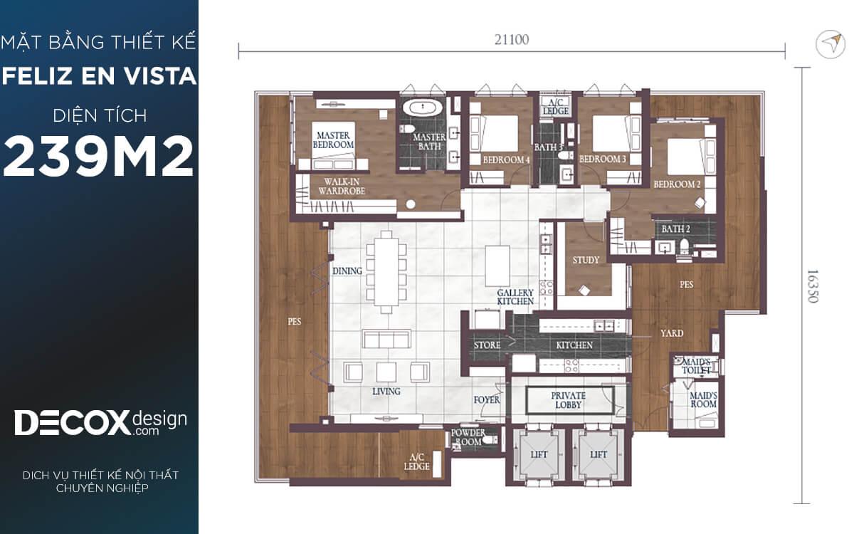 Mặt bằng thiết kế căn hộ chung cư Feliz En Vista tòa Atlaz 4 phòng ngủ 239m