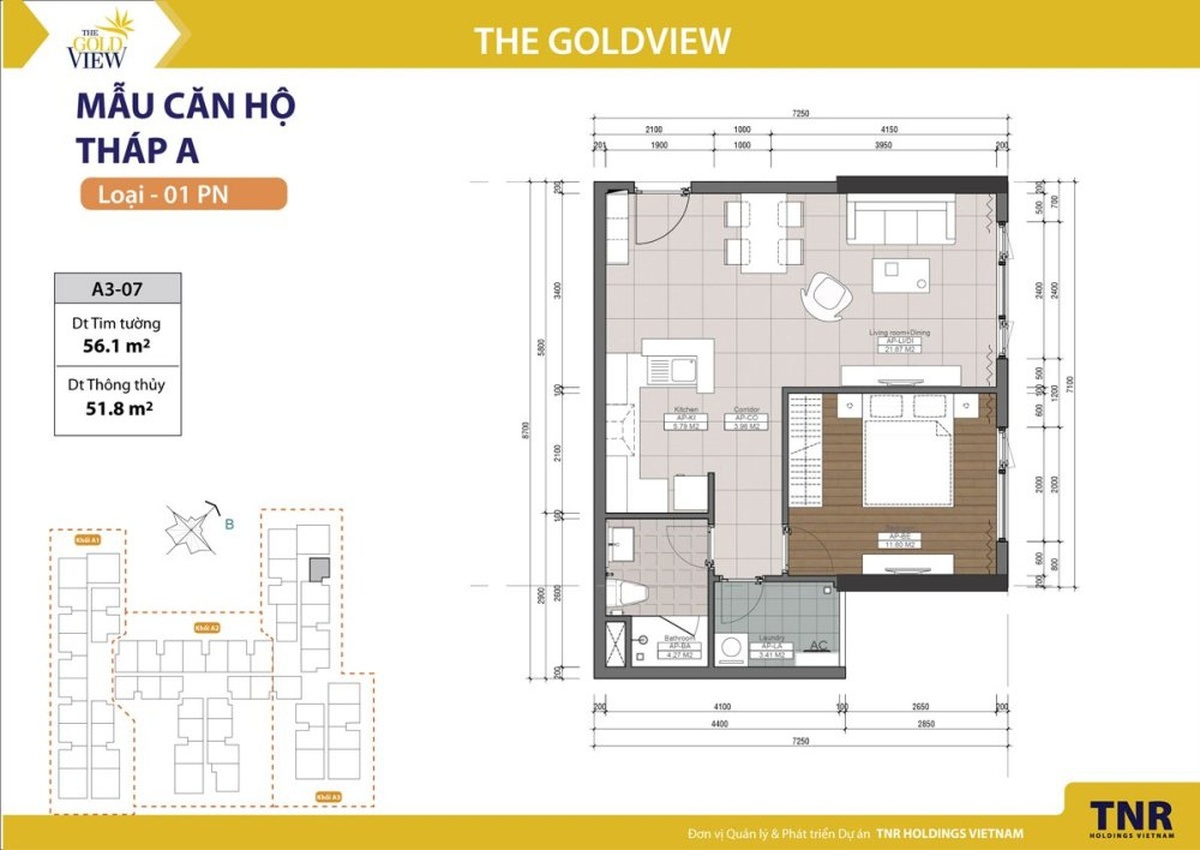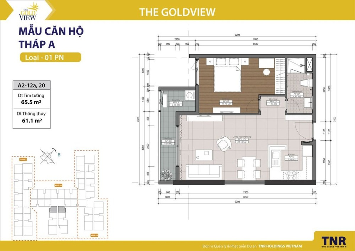Tầng điển hình của Tháp A chung cư The Gold View được chia làm 3 khu A1, A2, A3 gồm có căn hộ ở và văn phòng. Tại The Gold View được thiết kế nội thất căn hộ với đầy đủ những tiện ích cơ bản đủ để tạo cho chủ nhân tương lại một cuộc sống thoải mái và tiện nghi.