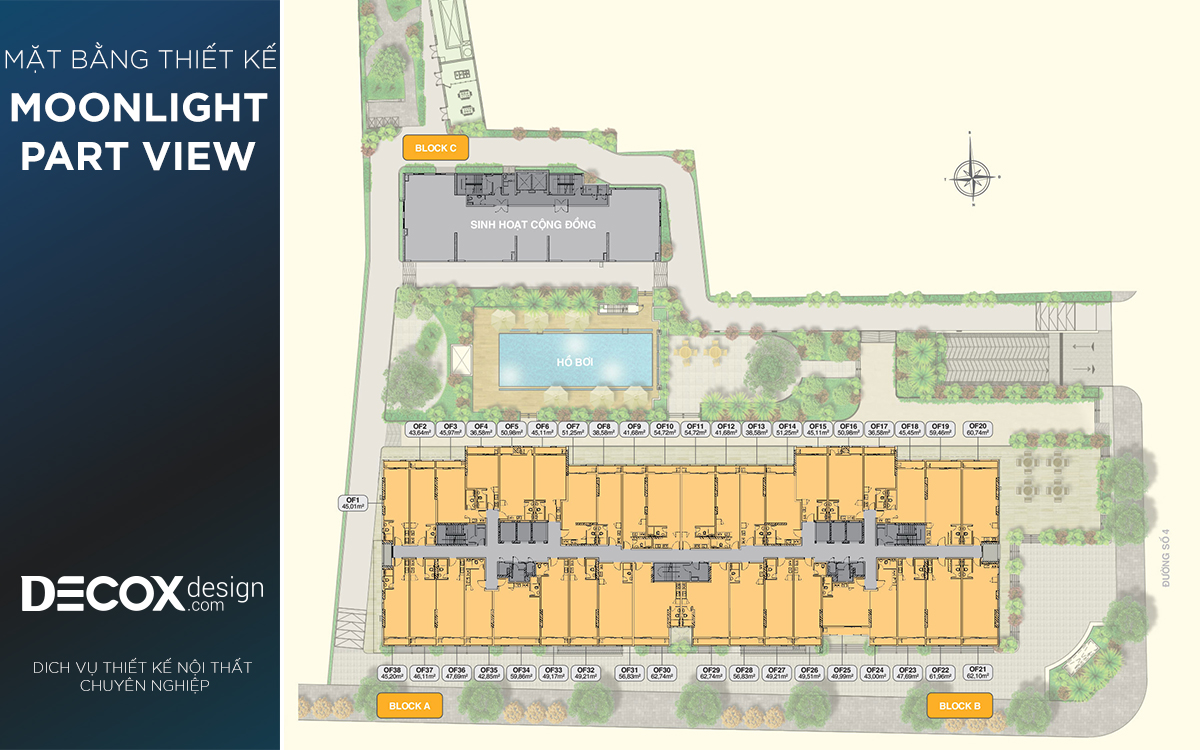 Dự án này có tổng cộng 463 căn hộ, diện tích đa dạng từ 52 - 120m2 cùng với 38 căn office-tel và 34 căn trệt thương mại nhằm mục đích phục vụ tốt nhất cho cư dân làm việc và sinh sống tại Moonlight Park View.