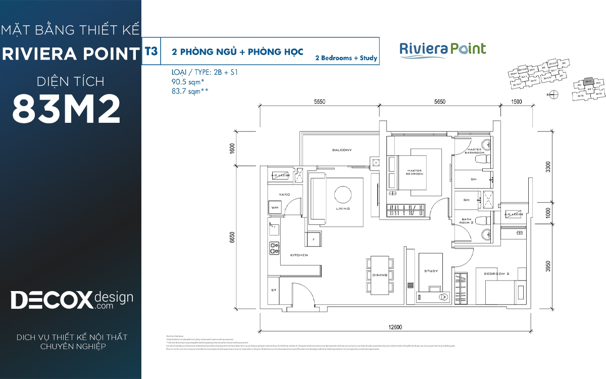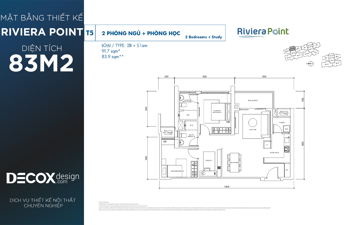 Mặt bằng căn hộ chung cư Riviera Point 83.9m2, 2 phòng ngủ block T5