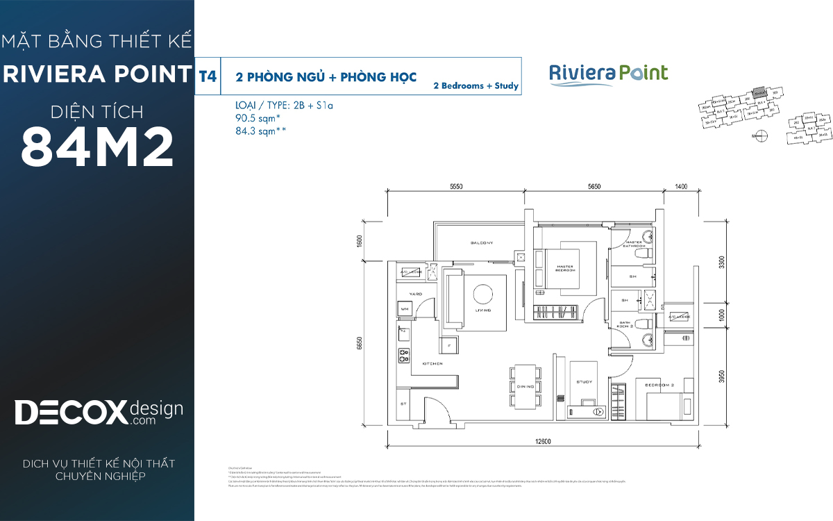Mặt bằng căn hộ chung cư Riviera Point 84.3m2, 2 phòng ngủ block T4