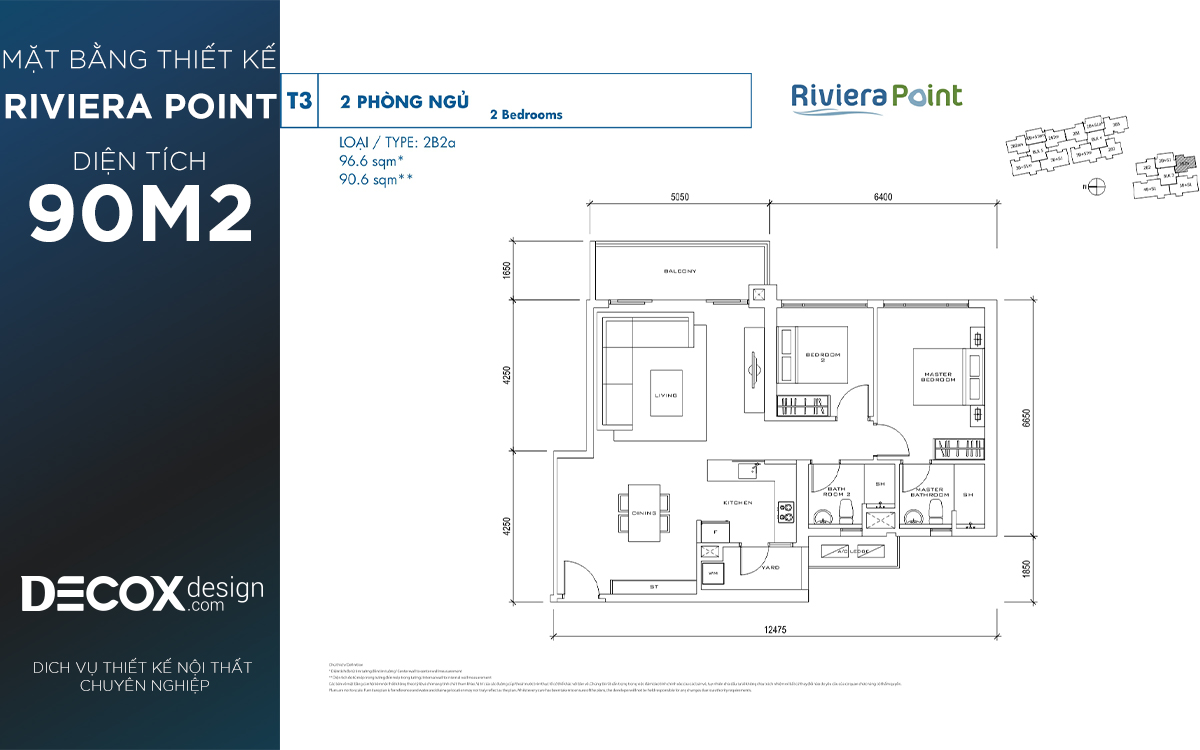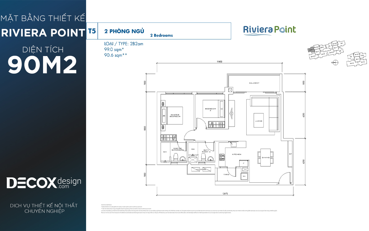 Mặt bằng căn hộ chung cư Riviera Point 90.6m2, 2 phòng ngủ block T5