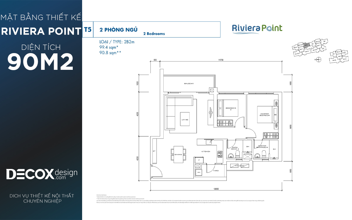 Mặt bằng căn hộ chung cư Riviera Point 90.8m2, 2 phòng ngủ block T5