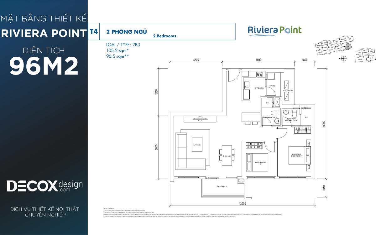 Mặt bằng căn hộ chung cư Riviera Point 96.5m2, 2 phòng ngủ block T4
