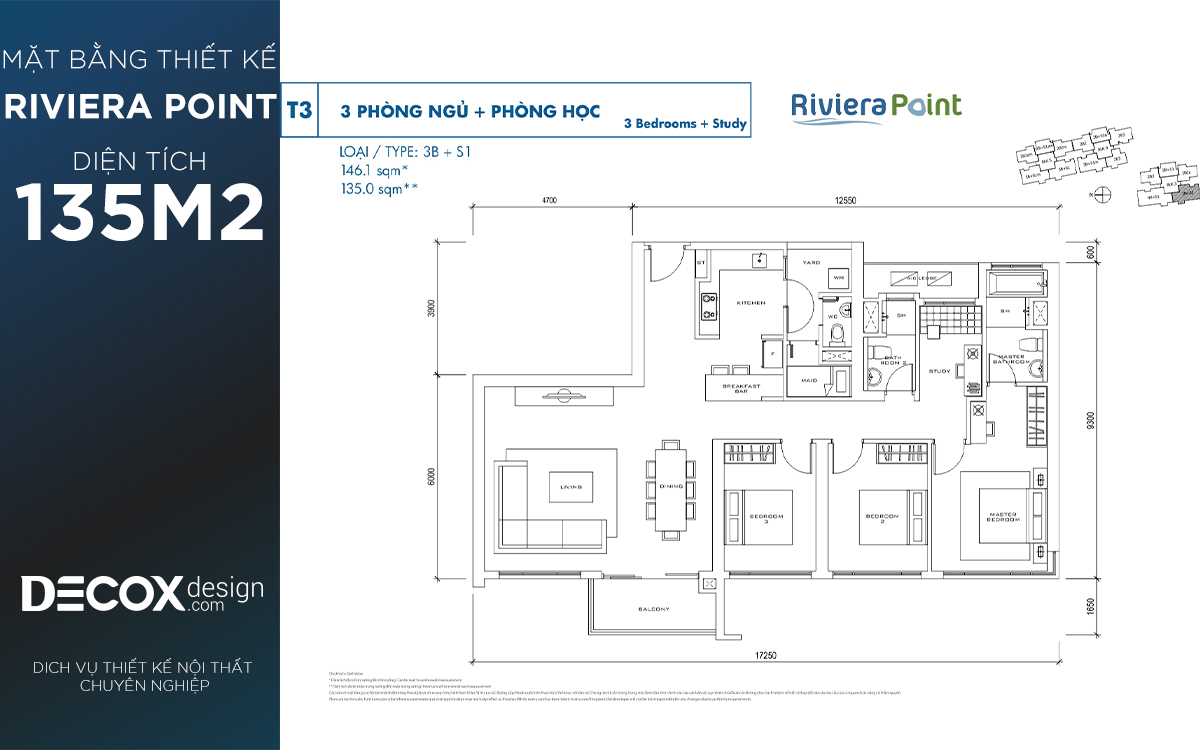 Mặt bằng căn hộ chung cư Riviera Point 135m2, 3 phòng ngủ block T3