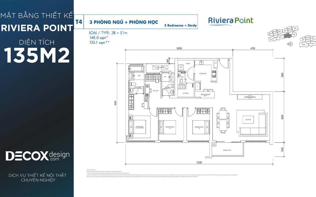 Mặt bằng căn hộ chung cư Riviera Point 135.1m2, 3 phòng ngủ block T4