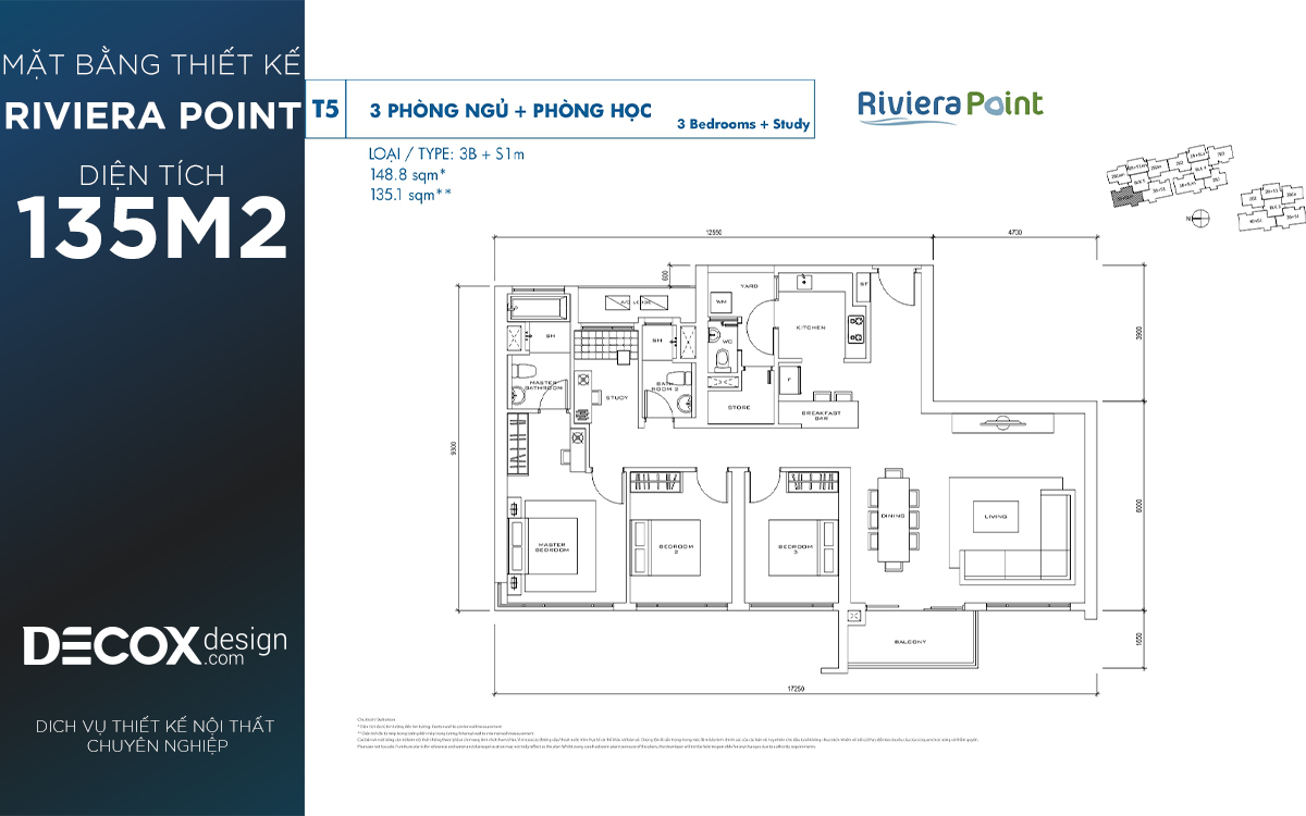 Mặt bằng căn hộ chung cư Riviera Point 135.1m2, 3 phòng ngủ block T5