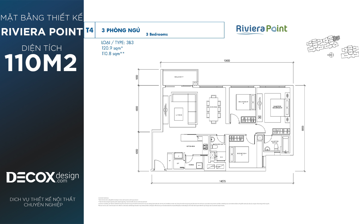 Mặt bằng căn hộ chung cư Riviera Point 110.8m2, 3 phòng ngủ block T4