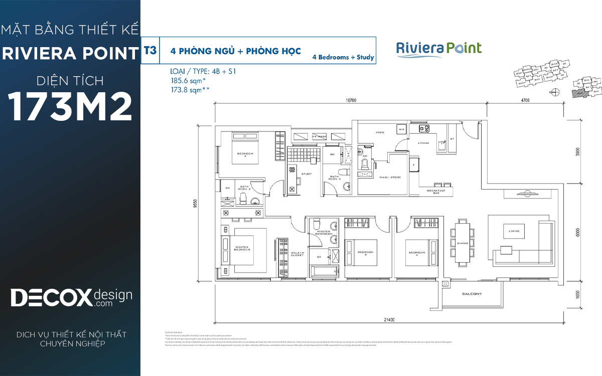 Mặt bằng căn hộ chung cư Riviera Point 173.8m2, 4 phòng ngủ block T3