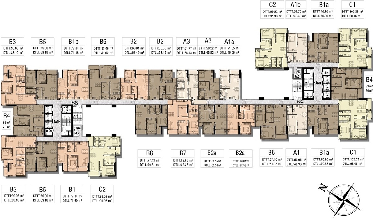 Các loại căn hộ: Từ 01 - 03 phòng ngủ