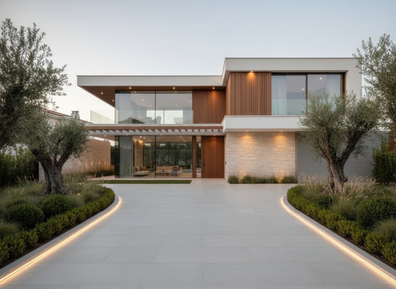 Biệt thự nhà vườn 2 tầng theo phong cách thiết kế hiện đại nổi bật với hình khối vuông vắn, đường nét sắc sảo, thiết kế độc đáo, sáng tạo và không đối xứng. Không gian mở, tích hợp nhiều cửa kính lớn và lan can kính, giúp gia chủ tận hưởng tầm nhìn rộng mở và kết nối liền mạch với thiên nhiên. Khuôn viên kiểu sân vườn tân cổ điển rộng rãi được bố trí ngăn nắp với cây xanh, tiểu cảnh, hồ cá và lối đi gọn gàng, tạo nên một môi trường sống yên bình, thư giãn nhưng vẫn sang trọng và hiện đại. Tất cả các đường nét kiến trúc đều tinh giản, thanh thoát, tránh rườm rà, thể hiện trọn vẹn vẻ đẹp tối giản và tinh tế của phong cách hiện đại.