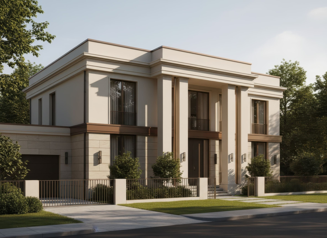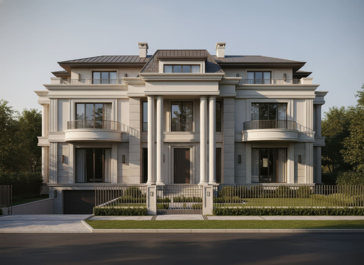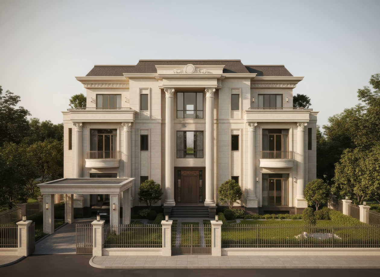 Sự phối hợp giữa kiến trúc cổ điển, vật liệu cao cấp và nhịp điệu hai mặt tiền giúp biệt thự Tân cổ điển trở thành biểu tượng của phong cách sống đẳng cấp