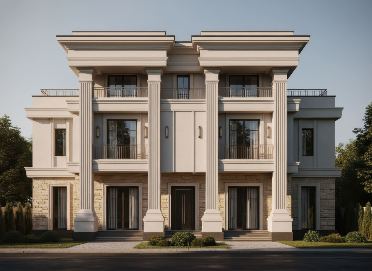 Phong cách Tân cổ điển (Neo-Classical) là sự hòa quyện tinh tế giữa kiến trúc cổ điển truyền thống và nét hiện đại, mang đến vẻ đẹp sang trọng nhưng không nặng nề. Phong cách này chú trọng tỷ lệ, hình khối cân đối, các chi tiết trang trí tinh xảo như phào chỉ, cột trụ, mái vòm, đồng thời kết hợp vật liệu hiện đại để tối ưu công năng. Thiết kế theo phong cách Tân cổ điển tạo ra không gian sống thanh lịch, tinh tế và đậm chất nghệ thuật, phù hợp với những biệt thự, nhà phố hoặc công trình đòi hỏi sự sang trọng, bền vững theo thời gian.