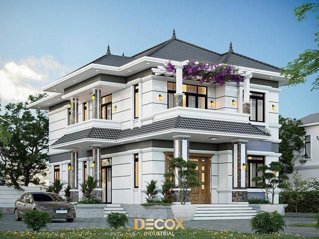 Biệt thự 2 tầng Tân cổ điển nổi bật với bố cục đăng đối và vật liệu cao cấp, giúp ngôi nhà vừa bền vững vừa toát lên khí chất sang trọng vượt thời gian