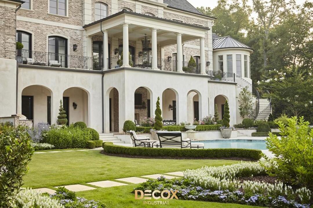 Biệt thự sân vườn Tân cổ điển thường sử dụng vật liệu cao cấp như đá, gỗ và kim loại, vừa bền vững vừa tôn lên vẻ đẹp tinh tế, sang trọng