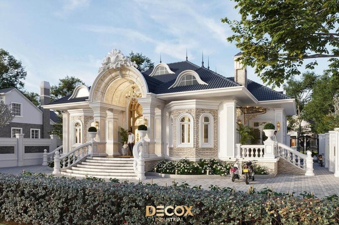 Biệt thự tân cổ điển kiểu Pháp thường sử dụng các chi tiết mái vòm nhẹ nhàng, mang đến cảm giác mềm mại nhưng vẫn giữ được phong thái bề thế của công trình