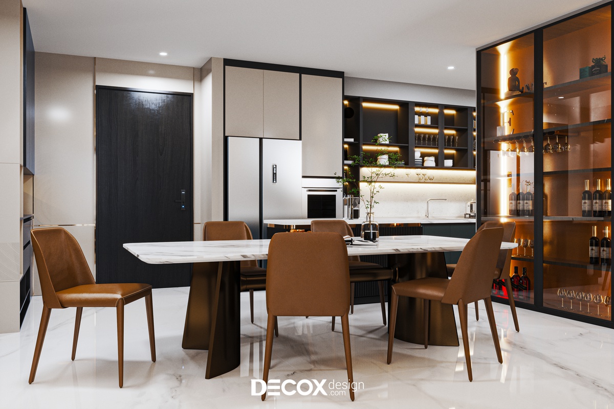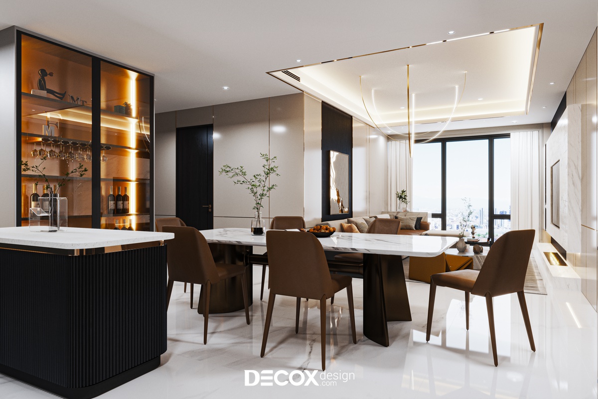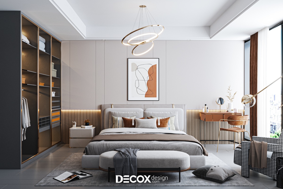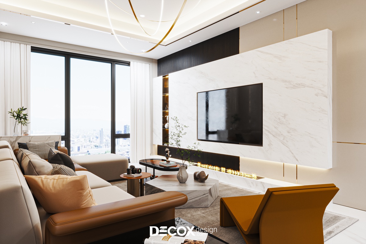 Mang vẻ đẹp mạnh mẽ và sang trọng, tinh tế và trang nhã thế nên không có gì ngạc nhiên khi mà những căn hộ chung cư cao cấp luôn lựa chọn thiết kế nội thất theo phong cách hiện đại để khiến cho căn nhà có thể bộc lộ ra được những gì đẹp nhất. Căn hộ Empire City được KTS của Decox Design khéo léo sử dụng nhiều gam màu nóng hòa quyện cùng nhau tạo nên một tổng thể vô cùng hút mắt, những chi tiết nội thất, cách bố trí bày xếp trong nhà cũng rất khoa học và thông minh.