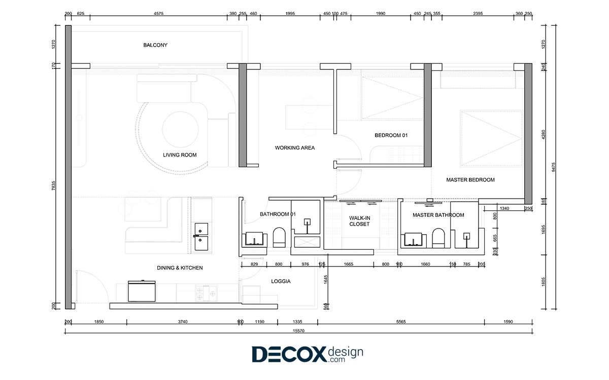 Chi tiết dự án thiết kế nội thất căn hộ Palm Heights 105m2