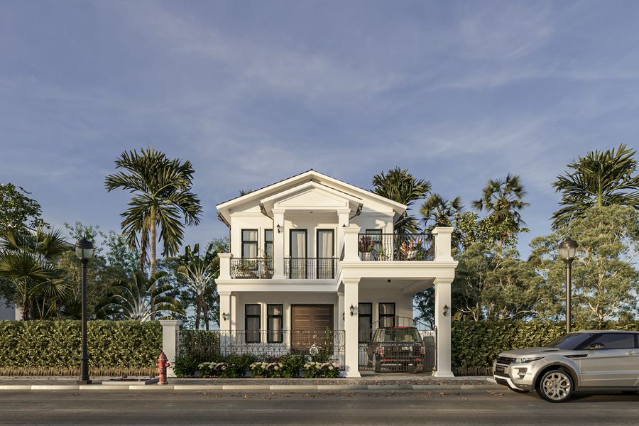 Các mẫu phối cảnh mặt tiền nhà phố 5m 2 tầng là những bản thiết kế mô phỏng trực quan mặt đứng kiến trúc của ngôi nhà phố cao 2 tầng, được xây dựng trên bề rộng mặt tiền khoảng 5m - kích thước phổ biến trong các khu đô thị Việt Nam. Các phối cảnh này thể hiện cách tổ chức hình khối, tỷ lệ chiều cao và chiều ngang, mảng đặc - rỗng, ban công, cửa sổ, vật liệu và màu sắc, giúp gia chủ hình dung rõ diện mạo công trình trước khi thi công. Đây là cơ sở quan trọng để đánh giá tính thẩm mỹ, khả năng thi công và sự phù hợp của ngôi nhà với bối cảnh đô thị xung quanh.