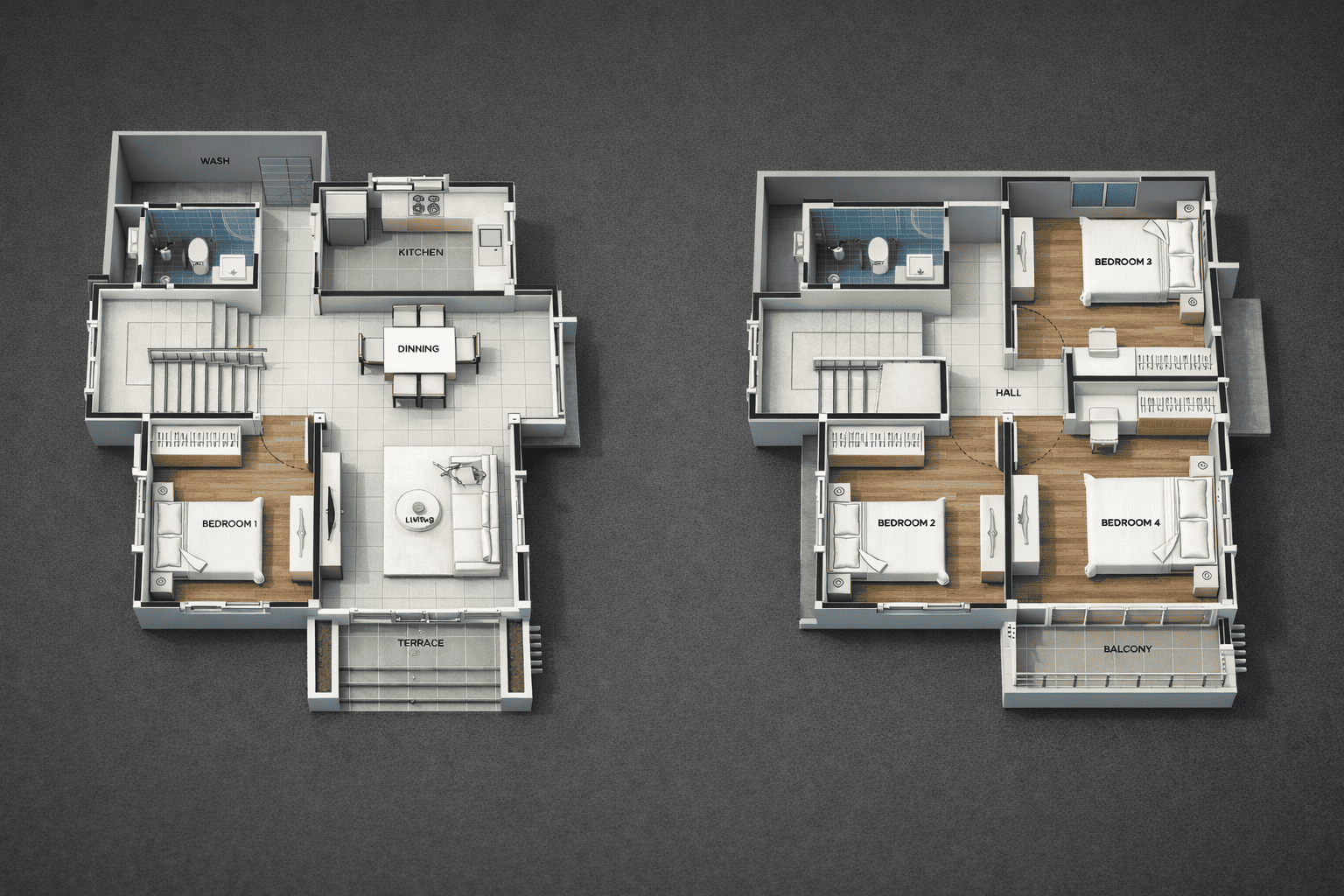 Các mẫu nhà biệt thự 2 tầng theo phòng ngủ và diện tích