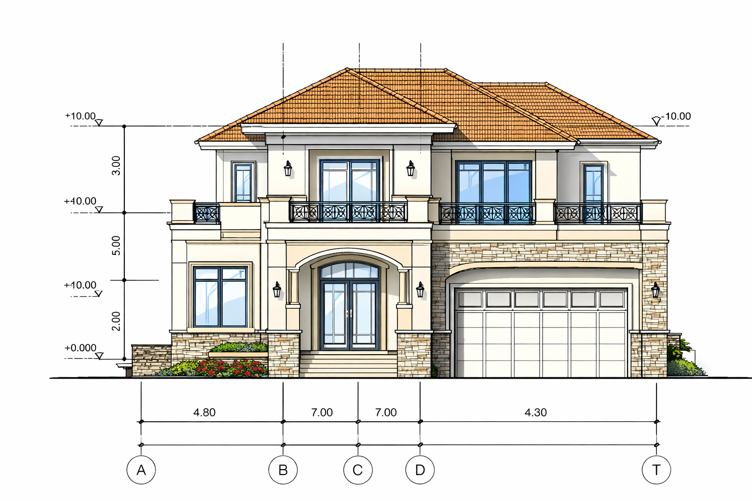 Bản vẽ thiết kế nhà biệt thự 2 tầng mặt tiền đẹp giúp định hình rõ ràng ý tưởng kiến trúc và thẩm mỹ mặt tiền, thể hiện phong cách thiết kế, tỷ lệ khối, vật liệu, bố cục không gian, màu sắc cùng các chi tiết trang trí chủ đạo. Nhờ đó, gia chủ có thể hình dung chính xác diện mạo ngôi nhà sau khi hoàn thiện, đồng thời đảm bảo mặt tiền hài hòa với cảnh quan xung quanh, gu thẩm mỹ cá nhân, hạn chế tối đa sai sót và các phát sinh không cần thiết, đảm bảo công trình được thực hiện đúng định hướng ban đầu và bền vững theo thời gian.