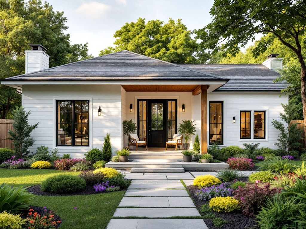 Nhà vườn tân cổ điển là sự giao thoa giữa mái Nhật mềm mại với các đường nét phào chỉ tinh tế. Những mẫu nhà này thường nhấn mạnh vào vật liệu sang trọng, cao cấp, kết hợp ánh sáng và cảnh quan sân vườn tạo nên không gian sống tiện nghi và tinh tế.