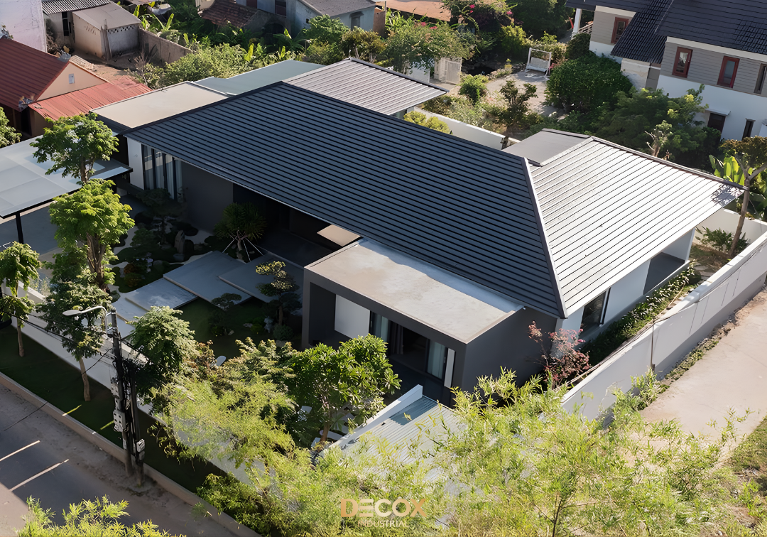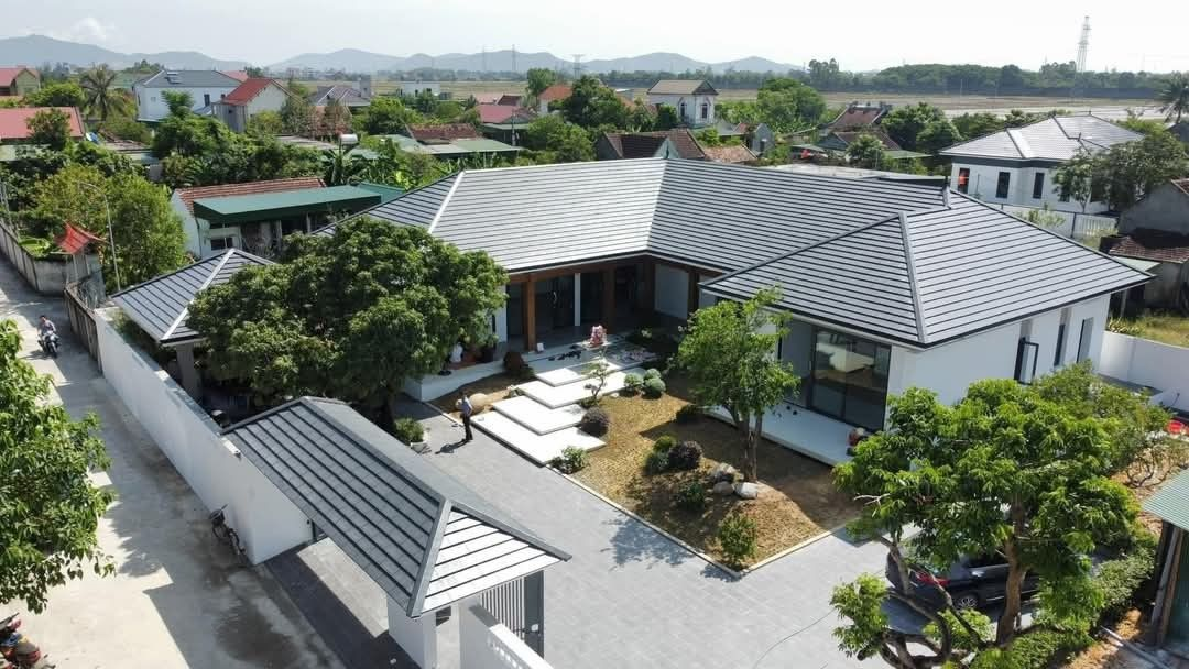- Thiết kế mở rộng, chồng lớp tinh tế: Mái chính kết hợp hài hòa với mái hiên, mái phụ, mái cửa sổ, tạo nên cấu trúc nhiều lớp giàu chiều sâu, tăng giá trị thẩm mỹ và cảm giác kiến trúc chỉn chu.