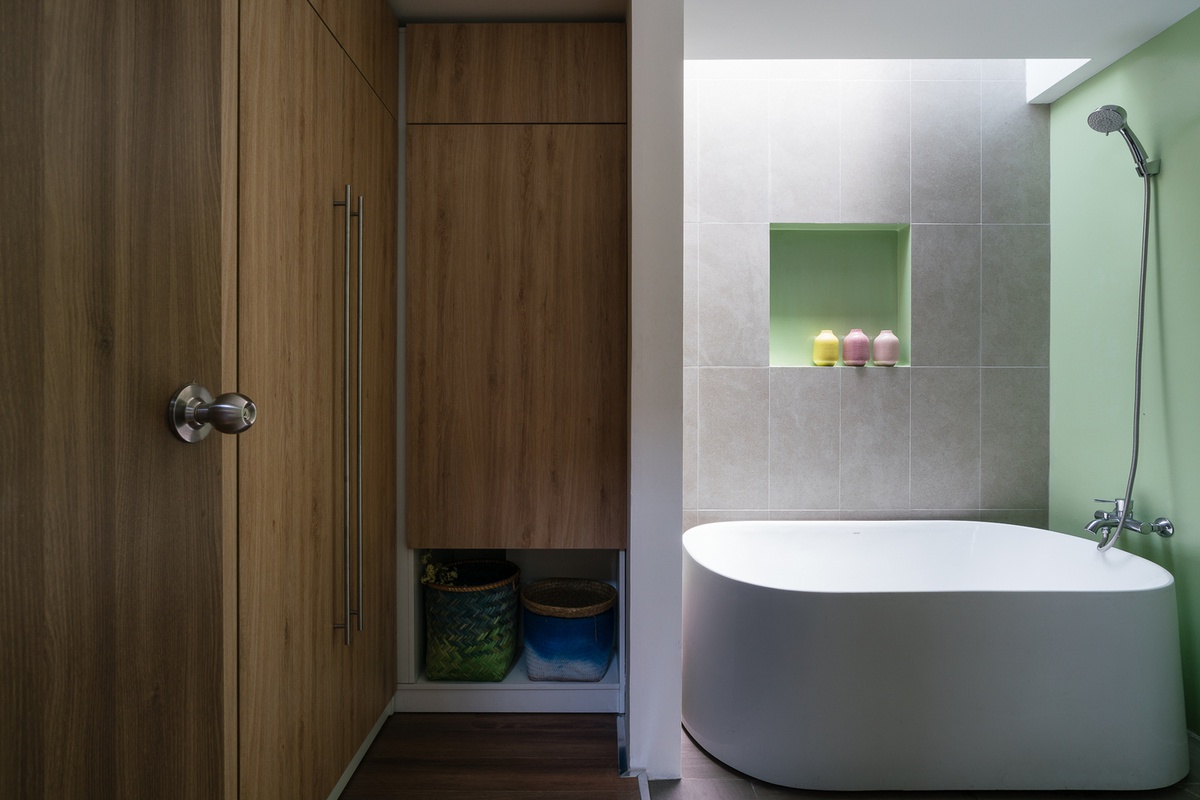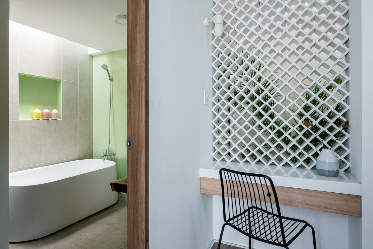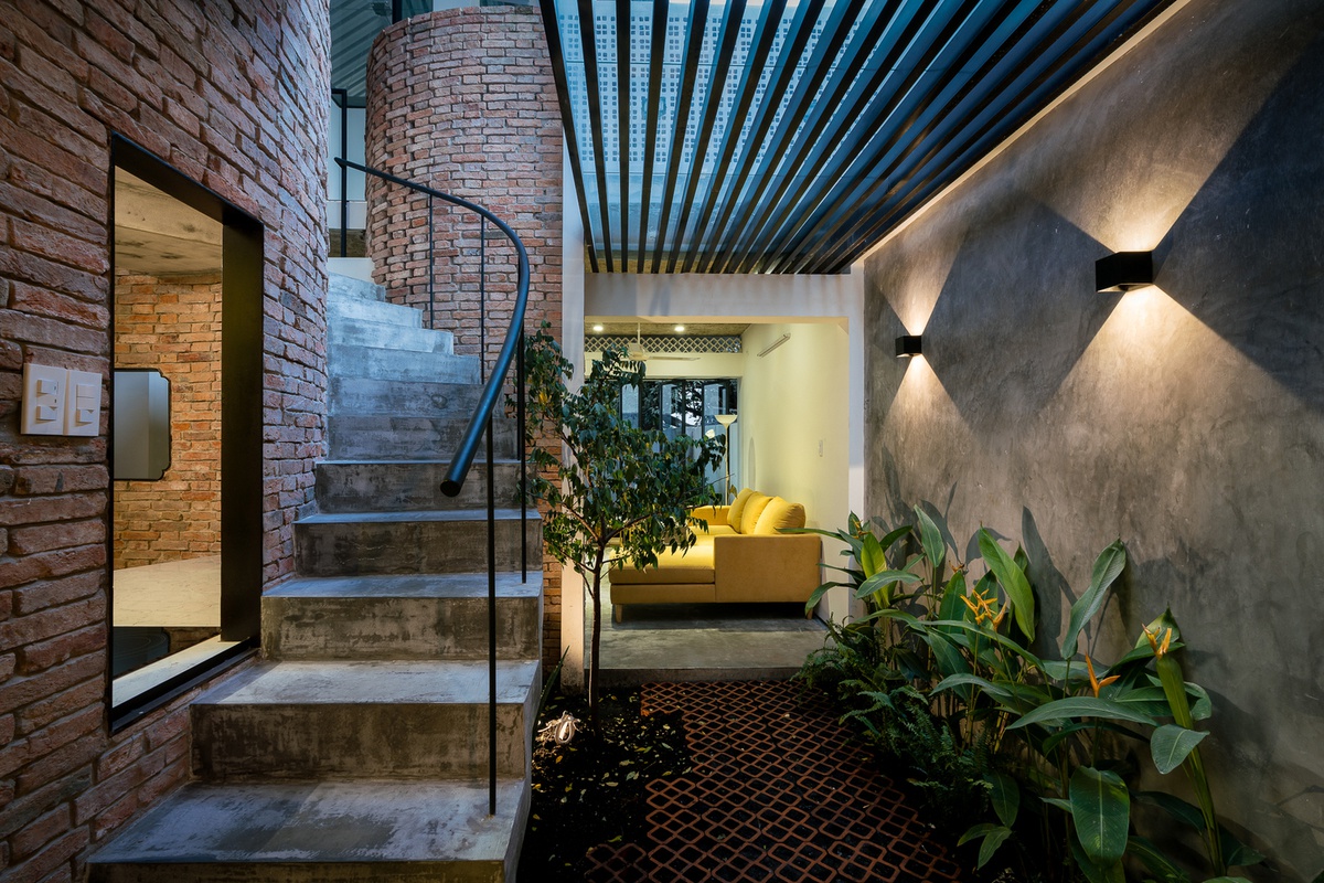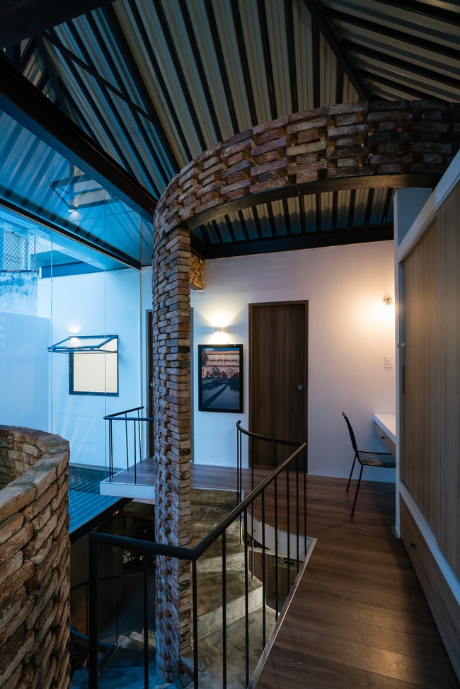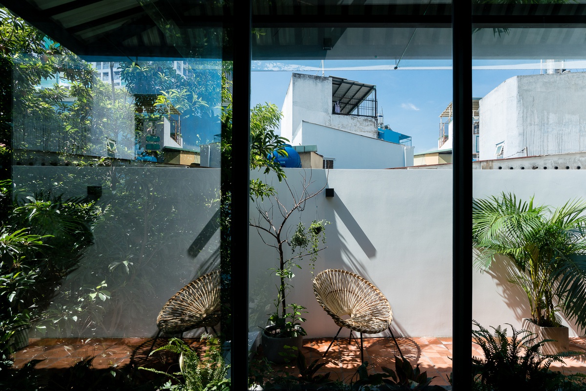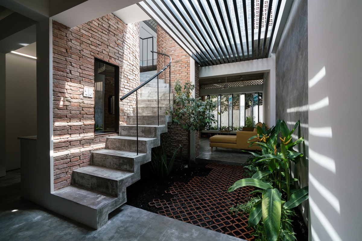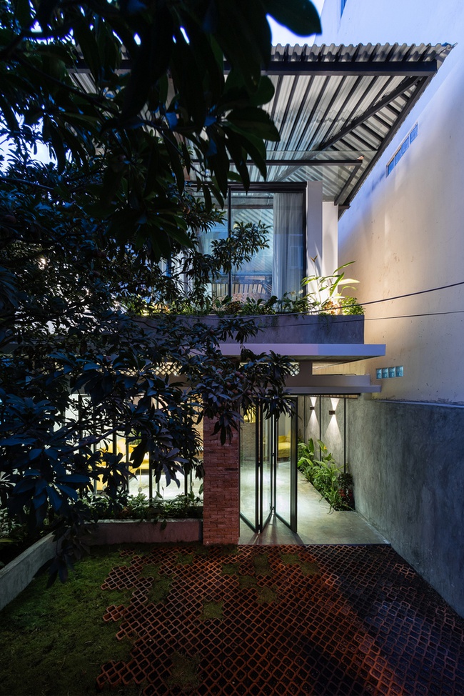 Bởi vì cửa chính khá cao, lại nằm ở góc khuất nên công trình tựa như trở nên biệt lập với bên ngoài mang đến sự yên tĩnh cho mảnh đất này. Khác với những căn nhà phố điển hình ở Sài Gòn thường là 4m thì công trình có bề dài là 6m, điều này vô hình trung đã tạo thành một lợi thế rất lớn cho ý tưởng thiết kế kiến trúc nhà phố chia tách mặt bằng theo cả chiều ngang và dọc giúp đa dạng không gian sinh hoạt cho gia chủ mà vẫn giữ được sự riêng tư, tĩnh lặng cho căn nhà theo yêu cầu của gia chủ.