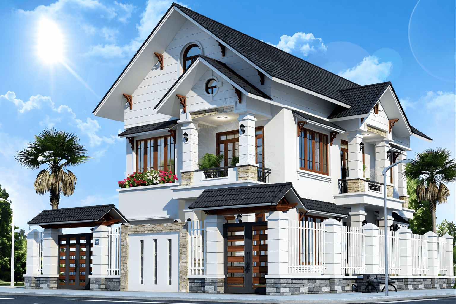 Mẫu biệt thự nhà vườn 2 tầng mái Thái