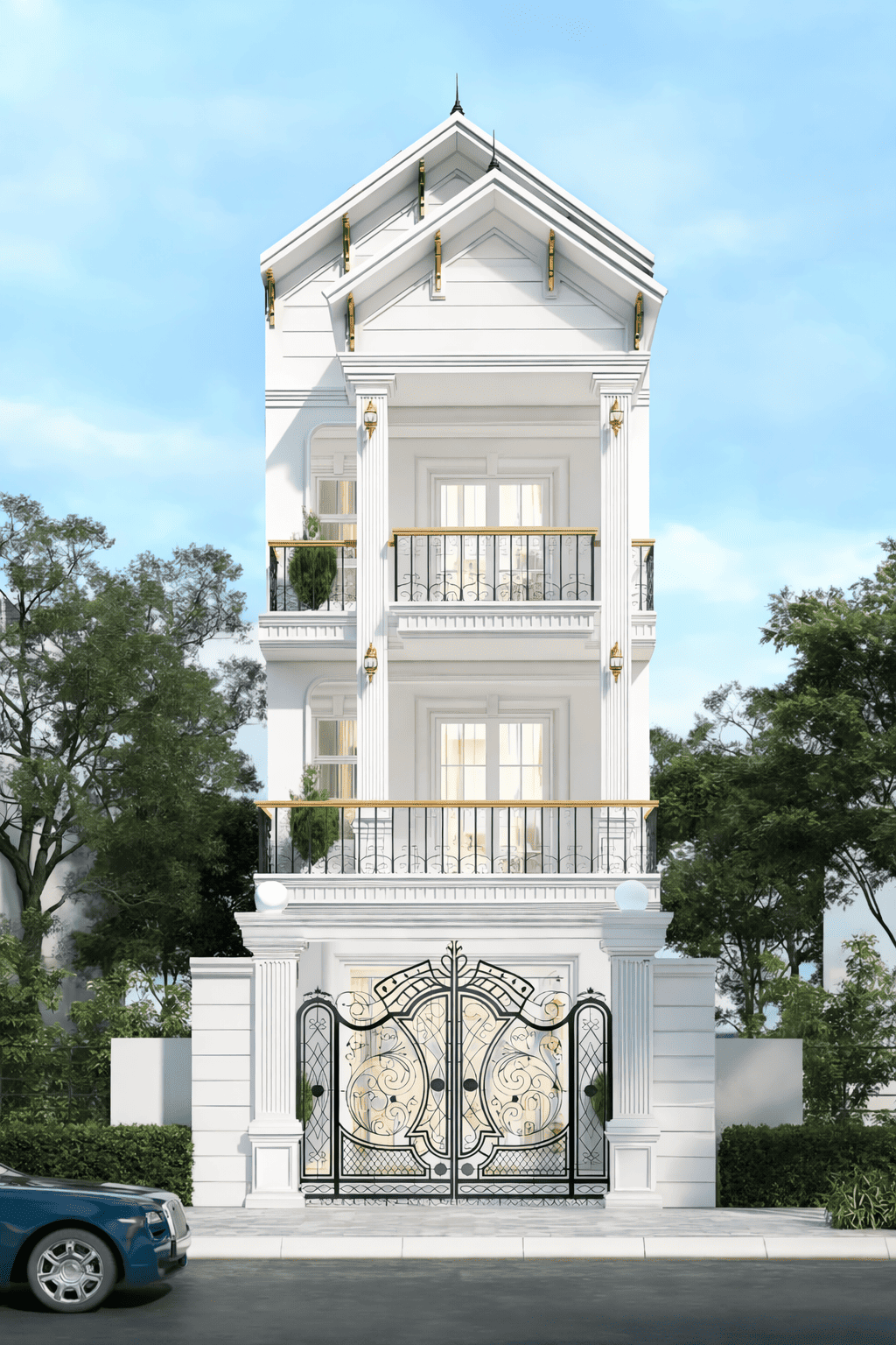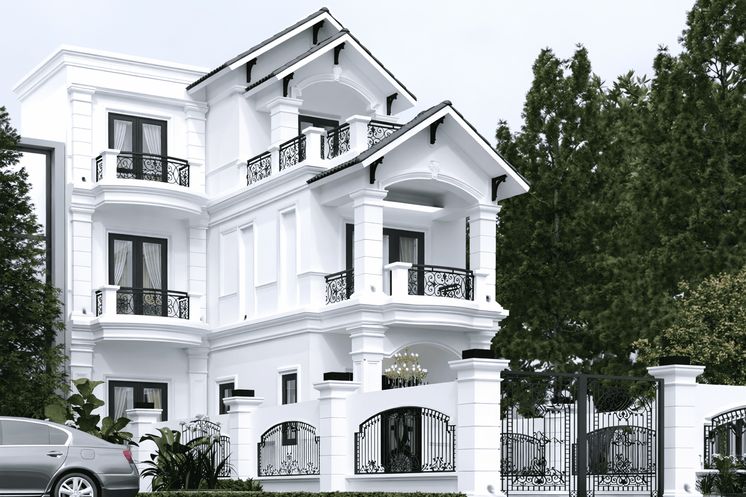 Biệt thự sân vườn mái Thái quy mô 3 tầng không đơn thuần là không gian sống mà trở thành một biểu tượng của sự uy nghi và quyền lực, nổi bật như một tòa lâu đài kiêu hãnh giữa cảnh quan. Tuy nhiên, chiều cao lớn khiến công trình rơi vào cảm giác “chiếc hộp đứng” cứng nhắc, nặng nề và thiếu tinh tế.
