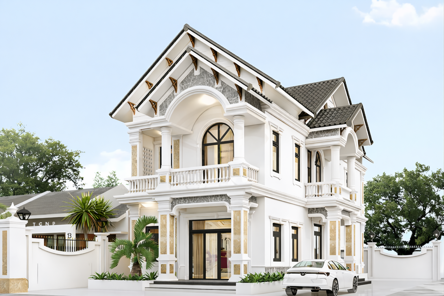 Hệ mái được tổ chức phân cấp tinh tế với một diện mái chính kết hợp cùng các mái phụ nhịp nhàng, độ đua mái được tính toán đủ sâu, để che nắng mưa, tạo bóng đổ rõ nét lên mặt đứng, giúp công trình có chiều sâu thị giác và khả năng điều tiết vi khí hậu hiệu quả. Dựa trên nền tảng tạo hình vững chãi đó, gia chủ có thể linh hoạt lựa chọn ngôn ngữ Mái Thái hiện đại hay Mái Thái tân cổ điển nhẹ thể hiện phù hợp với cá tính riêng.